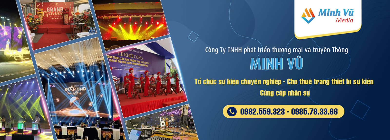 - Minh Vũ media với bề dày kinh nghiệm 15 năm, trực tiếp tư vấn tổ chức, điều hành & giám sát sự kiện, đảm bảo chuyên nghiệp, nhanh chóng, chính xác